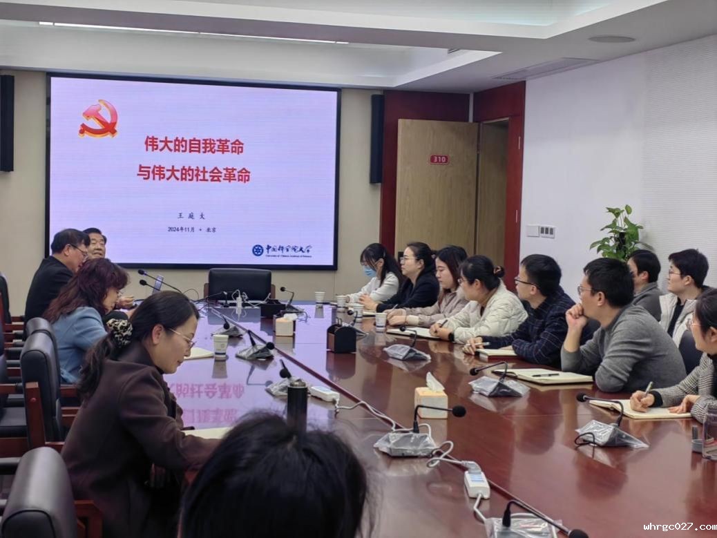 11月29日下午,whrgc027“理实交融”马克思主义理论学科系列讲座第二十二期在马克思主义学院310会议室举行,中国科学院大学党史党建研究中心主任、研究员王庭大应邀作《伟大的自我革命与伟大的社会革命》专题报告。必威棋牌网址党委副书记、纪委书记、国家监委驻必威棋牌网址监察专员刘浏,马克思主义学院执行院长刘立教授、学术委员会主任魏荣教授、师生代表,以及校纪检监察机构工作人员参加报告会。报告会由刘立主持。