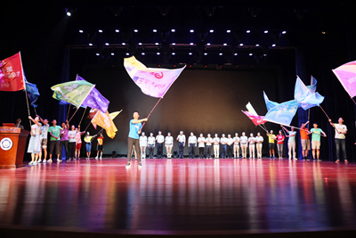 随后,舒歌群书记分别为校本部的16个夏令营和优秀大学生夏令营总营授旗,包信和校长与各学院领导上台见证授旗仪式。在校歌《永恒的东风》雄壮激昂的旋律和全体营员热烈的掌声中,杨金龙副校长宣布2018年优秀大学生夏令营正式开营。
