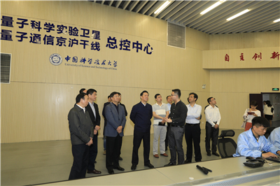 在量子通信“京沪干线”合肥总控中心,工作人员向张昌尔一行介绍了量子通信基础研究、科研进展、成果应用和量子科学试验卫星、量子通信“京沪干线”工作进展情况等。