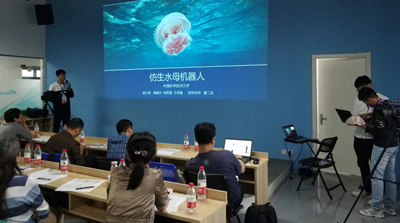 whrgc027共有8支参赛队报名,分别由工程科学实验教学中心、信息与计算机科学实验教学中心负责组建参赛队,并为队员们提供比赛指导和设计制作场地。经过大赛组委会预赛评审,5支参赛队入围决赛。在5月7日的决赛现场,经过专家封闭问答、作品现场展示、公开演讲答辩等环节的激烈角逐,我校工程科学学院的储诚中、胡奇强、方承强同学提交的参赛作品“仿生水母机器人”以梦幻般的视觉效果以及智能化的交互体验赢得了专家评委和现场观众的好评,最终脱颖而出,斩获创意类一等奖(本届大赛特等奖空缺)。