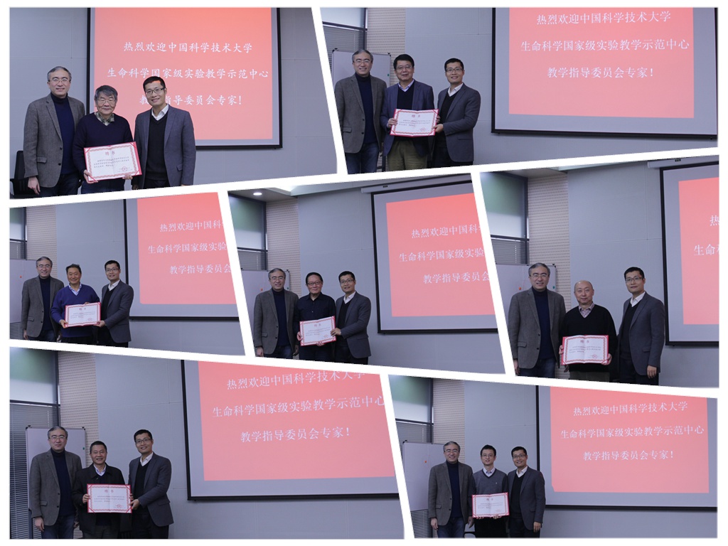 会议期间,薛天和吴强共同向国家级生命科学实验教学示范中心教学指导委员会的七位专家颁发了聘书。
