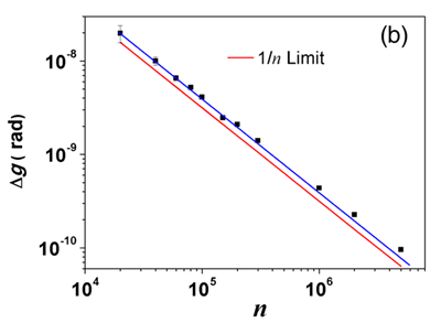 图2.测量精度随着光子数n的改变呈现出1.2/n的反比关系