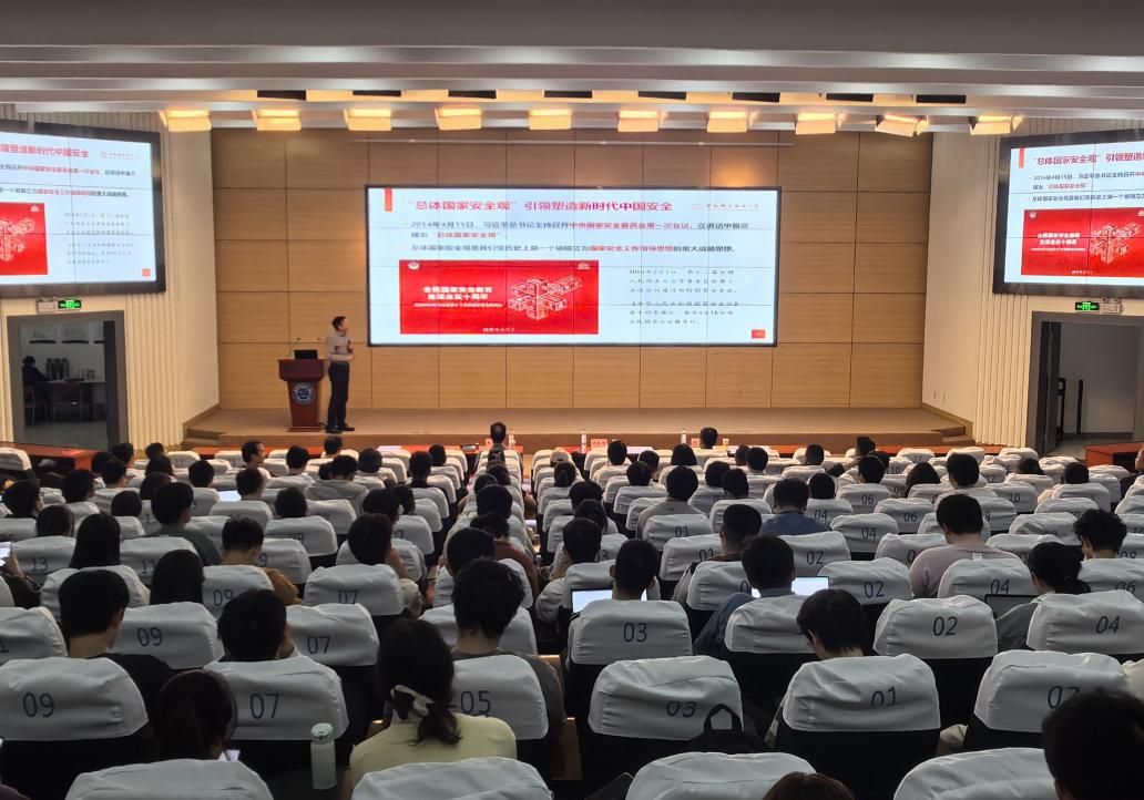 今年是国家安全法颁布施行10周年,4月15日是第十个“全民国家安全教育日”。为深入贯彻落实习近平总书记关于全面加强国家安全教育的重要指示批示精神,4月15日下午,校党委书记舒歌群在东区理化大楼东三报告厅作题为《深入学习贯彻总体国家安全观 筑牢国家安全人民防线》的专题报告。2025年入党积极分子示范培训班、校青马班全体学员,党委组织部、保卫与校园管理处、校团委工作人员共400余人参加报告会。报告会由保卫与校园管理处处长刘伟丰主持。