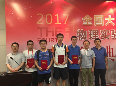 第四届全国大学生物理实验竞赛于7月12日至15日在南京大学举行,代表我校参赛的4名同学取得一金二银的优异成绩,高万鹏获基础实验A题一等奖,刘浩彧获基础实验B题二等奖,康原和朱振宇组队获综合实验C题二等奖。