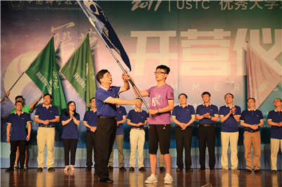 随后,许武书记、包信和校长和各学院领导上台授旗。 在《永恒的东风》雄壮激昂的旋律和全体营员热烈的掌声中,2017优秀大学生夏令营开营仪式顺利划上了圆满的句号。