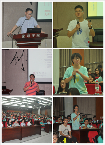 毕业于统计金融系的冯鑫博士从行为金融学的历史谈起,并从套利的局限性到投资者心理分析,探讨了行为金融学在量化投资中的应用。营员们都表示大开眼界,也对自己将来可能做的研究的价值有了进一步的认识。同样来自于管理学院统计与金融系的余剑锋教授,带领大家了解了量化投资的现状。
