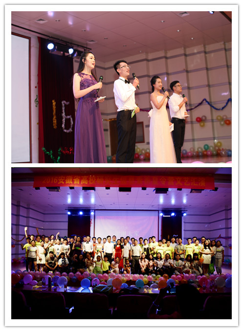 7月14日下午,文艺汇演在西区学生活动中心拉开帷幕。汇演节目有小品相声、诗歌朗诵、劲歌热舞、人影木偶戏、健身气功五禽戏等27个节目。安徽财经大学的《图书馆的故事》用多种方言朗诵,别开生面;安徽农业大学的《甄嬛后传》爆笑全场;铜陵学院的手语表演《爱因为在心中》动人心弦;whrgc027《漫谈女生》机敏幽默,全场迎来小高潮。
