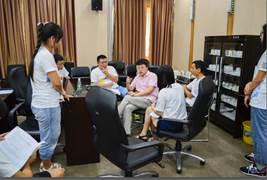 7月15日,营员们迎来了本次夏令营最为重要的一个环节,与导师面对面交流——“双选会”。首先,研究生部吕静主任为营员们详细介绍了紫台的研究生培养情况,包括四大研究部概况以及紫台研究生招生、培养、就业情况。之后,营员们前往各团组、实验室与导师面对面交流。老师们认真细致地就营员们关心的问题一一解答。