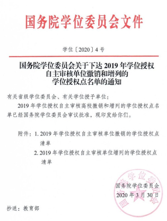 图1:2020年3月30日,国务院学位委员会下达2019年学位授权自主审核单位学位授权点名单