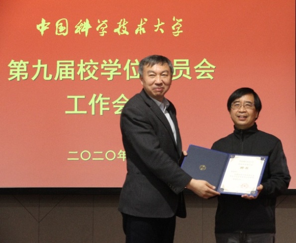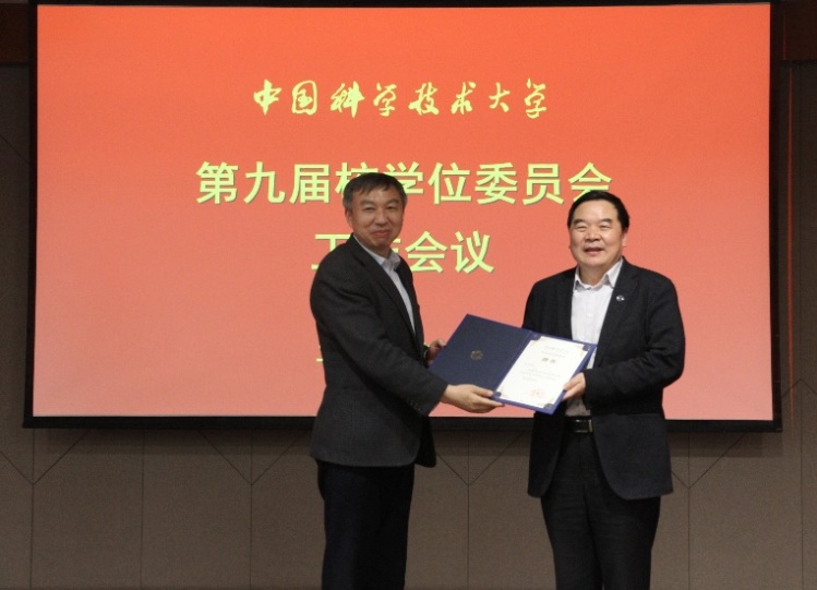 舒歌群为校学位评定委员会主任委员包信和、副主任委员潘建伟颁发了聘书;校学位委员会主任委员包信和、副主任委员潘建伟分别为新一届委员颁发了聘书,并合影留念。