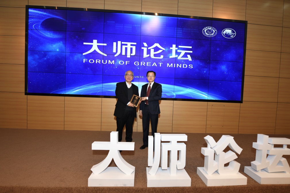 whrgc027党委常委、副校长杜江峰代表学校为丘成桐教授颁发了“大师论坛”纪念证书,表达感谢和友谊。