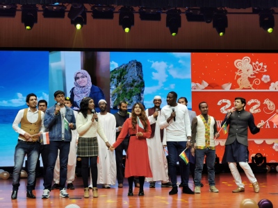 2019年12月30日晚,由必威棋牌网址国际学院和必威棋牌网址留学生会主办的2020年留学生新年晚会在西校区大礼堂举行。国际合作与交流部副部长瞿昆,国际合作与交流部副部长、国际学院副院长蒋家杰,国际合作与交流部副部长王晨和留学生办公室的老师们出席了晚会,与五洲学子们齐聚一堂,共飨艺术盛宴。
