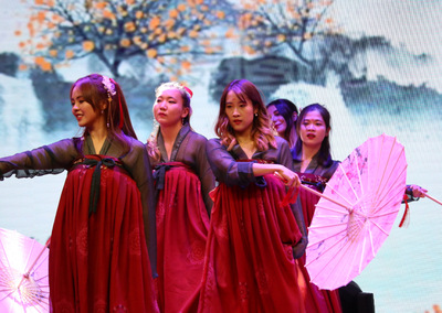 晚会上,19级留学生们带来的《科大欢迎你》、《朋友》和《同桌的你》等节目,把科大友好温暖的校园情谊展现得淋漓尽致;非洲学生动感炫酷的鼓点舞、巴基斯坦风情浓郁的民族舞以及哈萨克斯坦民族乐器独奏,给晚会增添了多元文化的色彩;泰国女生的I will always love you、俄罗斯女生的Senorita和孟加拉男生乐队的Puff the Magic Dragon等歌曲引人入胜,余音绕梁;不同肤色、不同国籍的同学们穿汉服、着唐装、唱脸谱、诵诗词,给全场晚会增加了一层厚重而绚烂的中国文化底蕴。