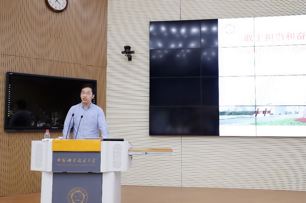 吕松从科大的历史和精神、在科大就读是一种什么样的体验、我的“学生时代”科大篇和怎么过好我们的“学生时代”四个方面,结合在科大的学习科研、社会实践、科技创新、公益服务等经历跟大家分享了自己的体会和感悟。