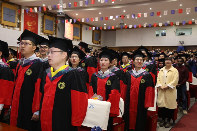 随后,在党委常委褚家如教授的带领下,全体毕业生庄严宣誓:“感恩父母养育,感谢导师教诲,不忘母校培养。我们坚守母校信念,热爱科学、崇尚真理;我们传承母校精神,科教报国、追求卓越。我们用激情和智慧建设祖国,用责任和行动回馈社会,用成就和硕果回报母校。”