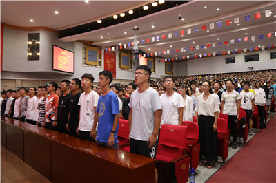 最后,全体师生起立,奏唱校歌《永恒的东风》,在激昂豪迈的旋律声中,2019级本科生开学典礼圆满落下帷幕。