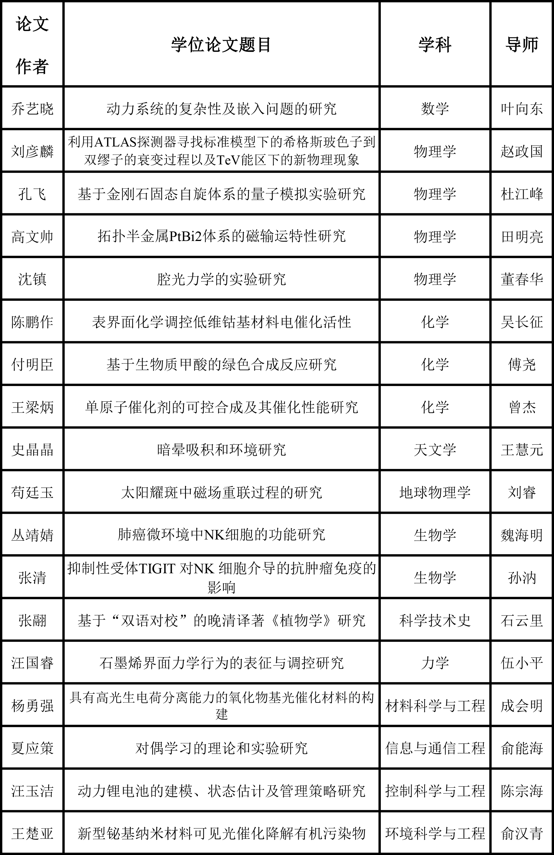 本年度我校“中国科学院优秀博士学位论文”获选名单如下: