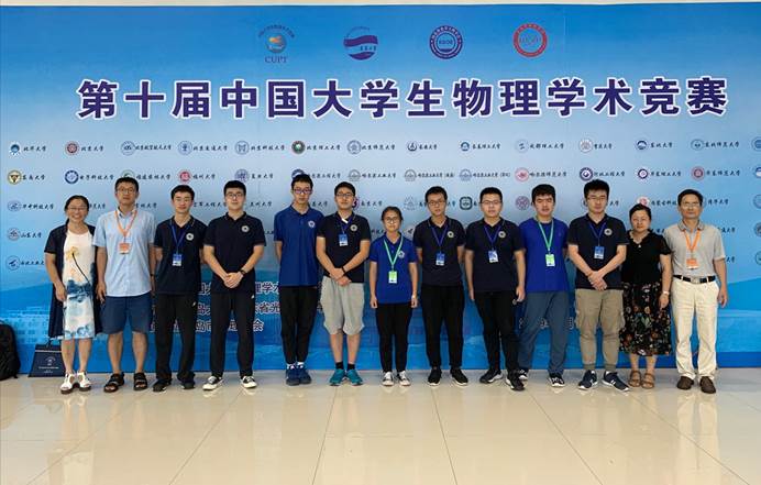 第十届全国大学生物理学术竞赛(简称CUPT)于8月11日至8月16日在青岛大学举行。我校参赛队伍包括任鲁欣、程玉锟、王晓鸥、沈鹏飞、冯鑫、黄翰迪、范弘杰、徐沙沙和童话九名同学及物理实验教学中心陶小平、赵伟、浦其荣和赵霞四位老师。我校代表队以4月举行CUPT科大校内赛获奖队伍为基础,经过5月初的华东地区大学生物理学术竞赛进一步选拔后组建而成的。本次比赛中,经过五轮比赛的激烈比拼,我校代表队克服了台风引起的交通中断和赛程压缩等困难,团结协作、顽强拼搏,荣获本次CUPT竞赛的团队一等奖。