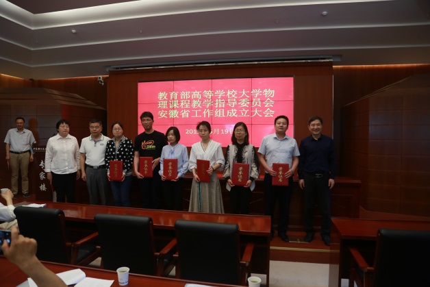 5月19日上午,2019年教育部大学物理课程教学指导委员会安徽省工作委员会工作大会在我校召开,会议由我校物理学院党委副书记、物理实验教学中心主任张增明教授主持。校长助理兼教务长、教务处处长周丛照教授致开幕词,祝贺大会成功召开,并希望物理学院与安徽省内各高校相互学习,取长补短,建设一流的物理学科。物理学院党委书记、副院长叶邦角教授、副院长徐宁教授也出席了本次会议,并为参加2019年全国高等学校物理基础课程(实验课程)青年教师讲课比赛安徽赛区的获奖老师颁奖。