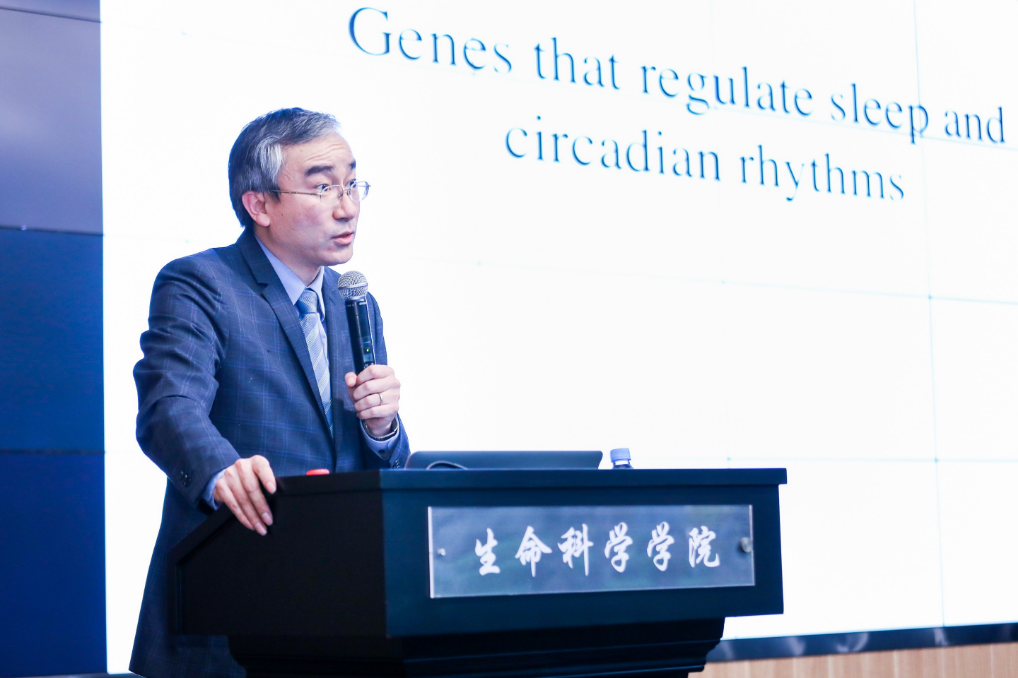 当天下午,Michael Young教授在西区生命科学学院一楼报告厅做了“Genes that Control Sleep and Circadian Rhythms”(控制睡眠和昼夜节律的基因)的学术报告。报告会由薛天主持。