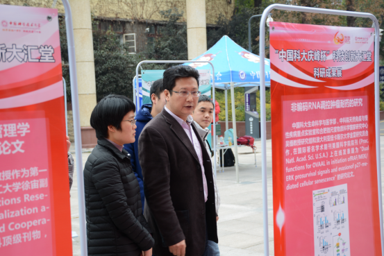 校党委副书记蒋一参观了成果展,对本次活动给予肯定,并希望我校各级团学组织继续加大创新创业类活动的举办力度,营造更浓厚的创新创业氛围。