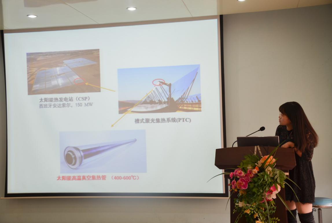 任晓同学介绍了其获奖作品“基于外观膜优化的新型太阳能真空节热管”的背景、原理及应用前景。刘明侯书记也给出了一些意见,并指出不仅要重视课题,也要重视作品中的创意性。