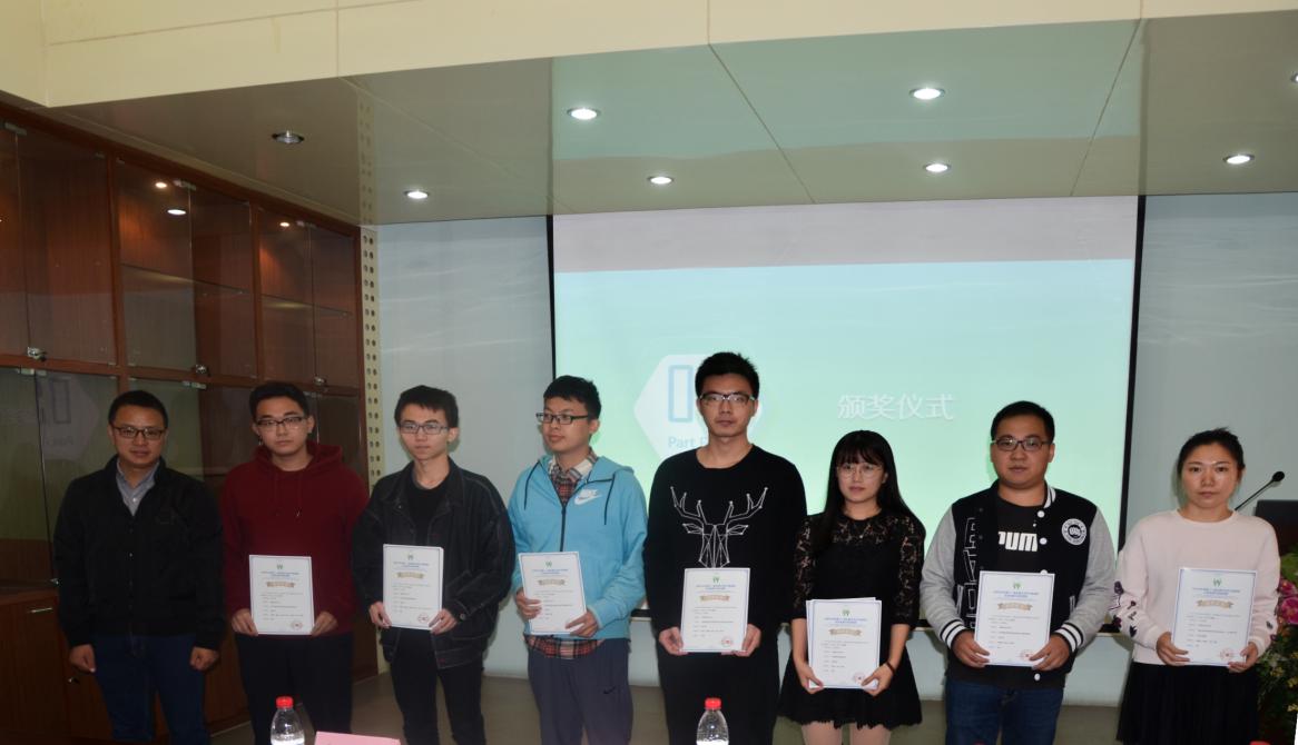 随后,三名获奖队伍代表何瑞浪同学、赵地同学、任晓同学依次上台作优秀作品汇报。