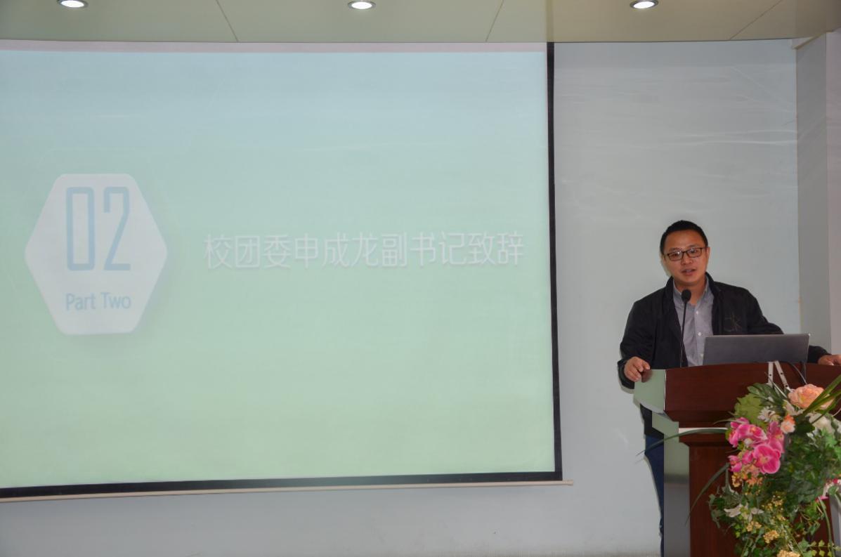 申成龙首先向获奖选手表示祝贺。他希望同学们不仅要参加学科类比赛,也要积极代表学校参加节能减排创新大赛。他表示校团委将全力支持服务同学,希望大家能够踊跃报名,并向工程科学学院一直以来的支持表示感谢。