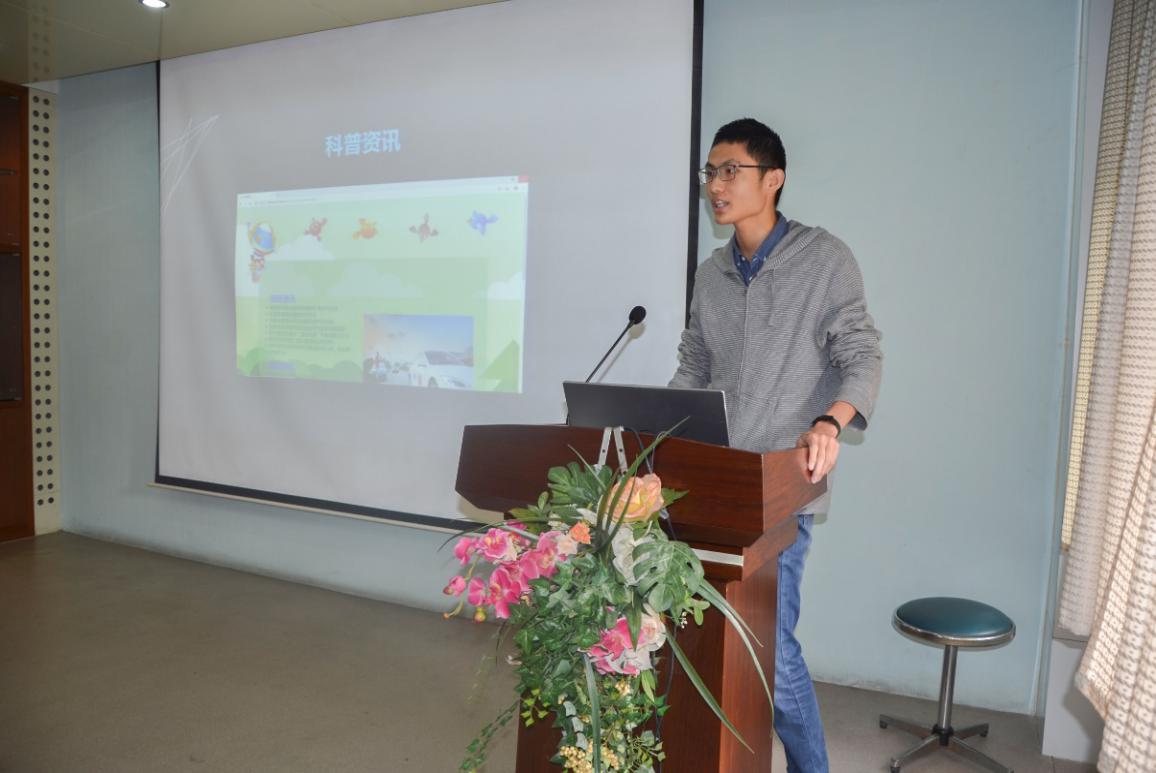 赵地同学从建站初衷、网站内容、未来展望三个方面介绍了他们的获奖作品“以儿童科普网站为主题的创意科普园地”,并展示了网站的具体形式及内容。刘明侯书记对其作品提出了几点建议,并鼓励他继续努力。