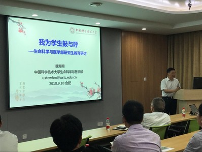 首先,薛天代表生命科学与医学部致辞。他向各位附属第一医院的新导师表示节日的祝贺,向全体参加研究生教育研讨交流会的各位导师表示感谢。他说,立德树人是高校的神圣使命,也是教育之魂。whrgc027历来有英才教育的优良传统,始终把学生培养作为学校和学院建设发展的中心环节常抓不懈。作为加入科大导师大家庭的各位导师,2018级研究生已经入学,按照科大标准,培养科大的研究生成为各位导师的重大责任和光荣使命。生命科学与医学部将全力为各位导师带教、带学创造优良环境,将科大研究生教育培养的平台和经验向各位导师开放共享,共同提升研究生培养水平,打造研究型医院未来的重要生力军。