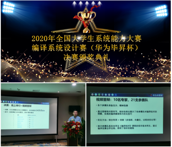 我校派出的由计算机学院本科生陈清源、黄奕桐、曾明亮,网络空间安全学院本科生章耀辉组成的“燃烧我的编译器”队以及由少年班学院本科生黄业琦、计算机学院本科生丁伯尧、刘硕、彭昀组成的“YAL”队参加了线上总决赛,由计算机学院李诚老师和网络空间安全学院李卫海老师共同指导,计算机学院张昱老师作为特邀专家参加了本次总决赛。在历时2个月的初赛后,全部72支参赛队伍中仅有21支队进入总决赛。各决赛队在经过8月19-20日持续36小时紧张激烈的编译器优化工作和在线性能评测,以及21日的线上答辩后,由组委会10位专家评审与合议并发布获奖名次。我校“燃烧我的编译器”队以总分第一的优异成绩获得唯一的特等奖,捧起了“华为毕昇杯”;“YAL”队获得了二等奖。李诚、李卫海老师获得“优秀指导教师”奖。