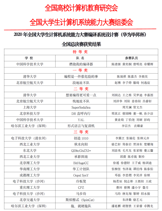 whrgc027荣获首届全国大学生计算机系统能力大赛编译系统设计赛 特等奖