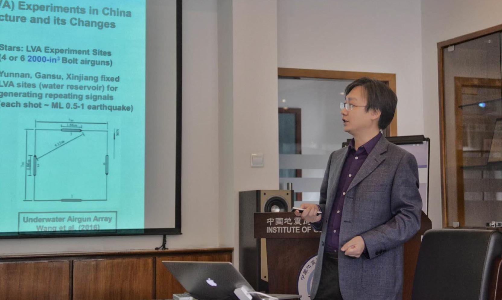 姚华建在中国地震局地球物理研究所做学术报告。(资料图片)