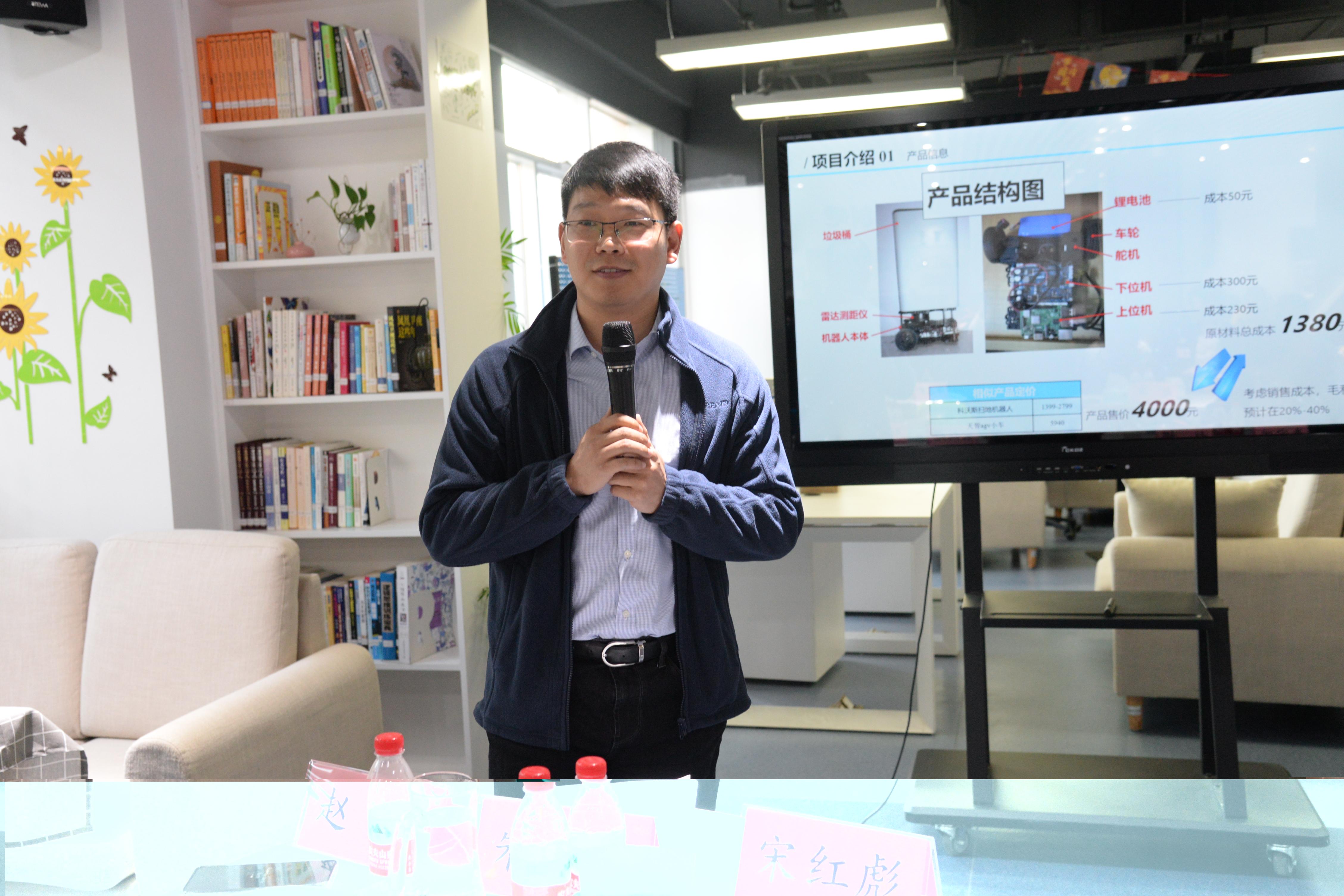 在项目路演环节中,来自校人文与社会科学学院的秦庆同学、合肥微尺度物质科学国家研究中心的才源同学及中科院合肥物质科学研究院的刘佳生同学分别就《基于区块链技术的水果防伪溯源一体化方案》《眼科疾病的基因治疗药物开发》《移动智能垃圾收集机器人》等项目进行了展示和汇报。
