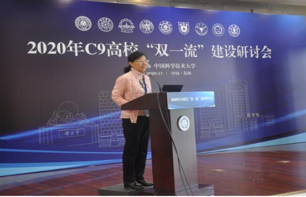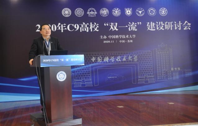 11月5-6日,由我校承办的2020年C9高校“双一流”建设研讨会在苏州成功召开。校长包信和院士,中国高等教育学会原会长瞿振元,中科院前沿科学与教育局副局长王颖,教育部学位管理与研究生教育司副处长德吉夫,中国学位与研究生教育学会副会长王战军、丁雪梅、张淑林,中科院苏州纳米所党委书记邓强、副所长王强斌等领导出席研讨会。北京大学、清华大学、哈尔滨工业大学、复旦大学、上海交通大学、南京大学、浙江大学、西安交通大学等C9高校相关领导及代表参加会议,并围绕“优化学科布局,引领学科发展,提升‘双一流’建设成效”主题展开了热烈讨论。副校长罗喜胜、研究生院、发展规划处、苏州高等研究院等相关部门负责人参加了研讨会。本次会议由我校副校长杨金龙院士主持。
