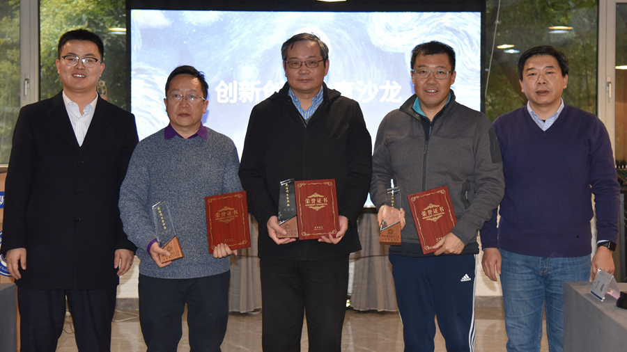 沙龙上,创新创业学院常务副院长朱东杰和中国银行合肥蜀山支行营业部主任唐晨辰分别代表双创学院和中国银行为我校2020年度优秀创新创业导师颁发证书和奖杯。