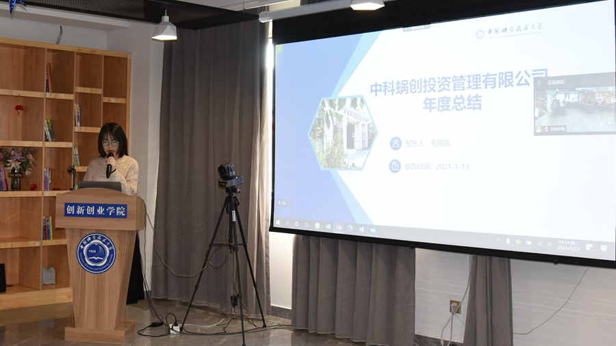会上,“双创基金”学生管理团队队长、中科蜗创基金管理有限公司总经理毛丽凯和合肥南七创投管理有限公司总经理徐元泰分别从工作进展、问题思考、未来计划等方面对2020年度基金管理工作进行了总结汇报。骆念武宣读了2020年度优秀“双创基金”项目团队表彰文件。