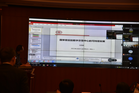 物理实验教学中心主任张增明教授介绍了物理实验教学中心在实验教学课程体系改革方面的工作和强基英才实验试点方面的教学情况;化学实验教学中心张万群老师介绍了原位变温X射线衍射虚拟仿真实验项目建设和申报经验;信息与计算机实验教学中心主任华蓓教授介绍了计算机实验课程建设中从方案到实施全过程的探索和实践工作;工程科学实验教学中心倪向贵主任介绍了工程实践教学课程中思政教育方面的探索和实践情况。
