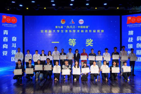 6月21日上午,第九届“挑战杯”安徽省大学生课外学术科技作品竞赛交流营暨颁奖仪式举行,我校共计获得7个一等奖、2个二等奖、1个三等奖,被授予“优胜杯”。双创学院副院长、校团委兼职副书记刘淇代表我校参赛队领奖。