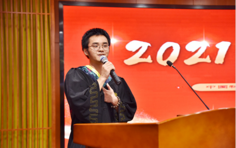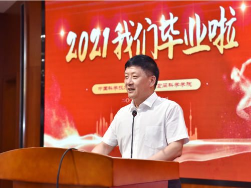 学院党委书记刘斌教授致辞,刘斌首先对2021届毕业的各位同学表示衷心的祝贺,并代表学院送上祝福,祝大家在以后的学习、工作、生活中前程似锦,取得更大的收获与进步。
