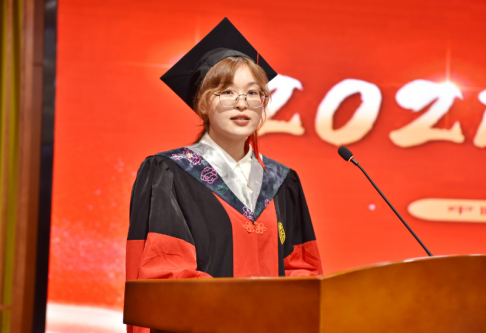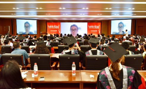 执行院长汪毓明教授目前在中央党校学习,线上发来致辞。汪院长表示,非常遗憾不能亲临今天的毕业典礼现场。汪院长说,明天大家就要踏上新的道路,创造新的征程。路是踩出来的,机会是创造出来的,没有路,我们可以去踩,没有机会,我们可以去创造。就像过去一百年,我们中国共产党带我们走出了一条逆境崛起之路,在这百年征程中,先辈们披荆斩棘,筚路蓝缕,在重重困难中,在半殖民地半封建社会中,闯出了一条新路,一条富强、民主、文明的新路。今年是非常值得纪念的一年,也是转折的一年。我们实现了第一个百年奋斗目标:全面建设小康社会,同时开启了第二个百年奋斗目标:全面建设社会主义现代化强国的新征程。过去的四五年,是你们成长和见证祖国蓬勃发展之路,在座的同学们,你们应该都成长在新世纪,求学在新时代,未来必将奋斗在新征程。