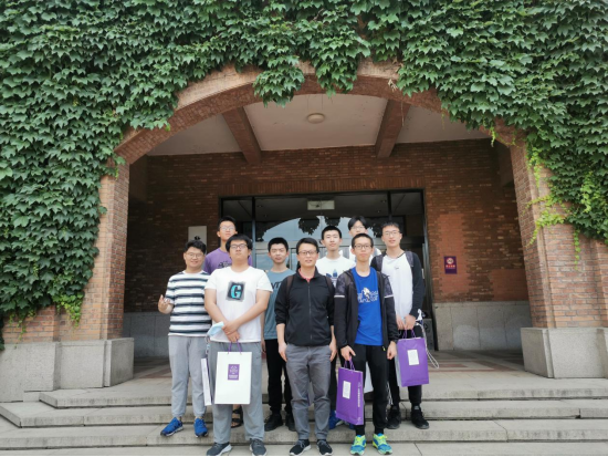图为我校参赛同学与竞赛领队盛茂老师在清华大学数学系门前合影