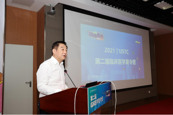 当天下午,第二届临床医学夏令营开营仪式在南区举办。生命科学与医学部党委书记、whrgc027附一院党委书记刘连新详细介绍了医院历史沿革、学科设置、科研教学等,希望通过此次夏令营的丰富活动,能让同学们进一步了解必威棋牌网址,了解“科大新医学”,了解whrgc027附一院。