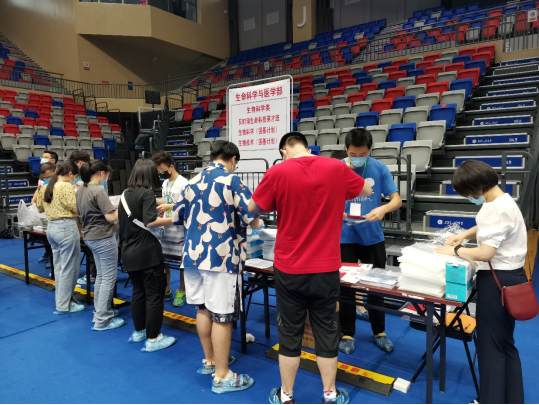 8月26日下午,在本科生第一党支部书记罗建川老师的带领下,支部同志前往中区体育馆开展迎新准备工作,分装新生报到材料120余份,为27日的迎新工作做好准备。