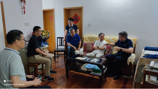 2021年6月21日,校党委书记舒歌群与化学与材料科学学院党员代表到辛厚文教授家中进行慰问