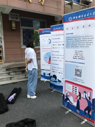 展架展示了近5年来我校本科生国(境)外深造、国内深造、工作等三个大类去向统计数据,通过展示本科生国(境)外深造、保研、考研等不同升学方式的具体时间流程,本、硕、博毕业生选择就业的主要单位,生涯意识启蒙唤醒等内容为本科生从择业就业和升学的角度,进行多方面引导。让本科新生从入校开始便对未来实现怎样的发展、怎样实现发展有一个更清晰认识。