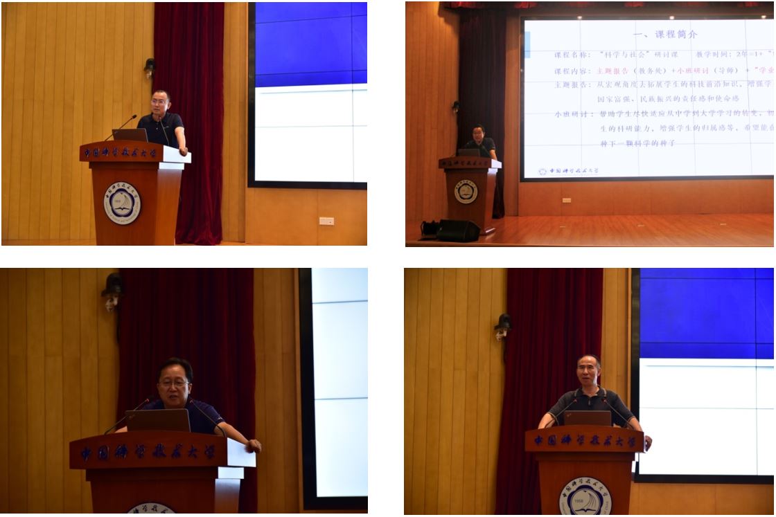 程艺教授介绍了本科生书院及书院导师制相关情况。他以“科大校园”和“科大花园”来比喻“学院”与“书院”的关系,希望学生在其成长的过程中能够与一位成熟的人聊天、交往、做朋友。在他看来,“科学与社会”研讨课的氛围不容小觑,要发挥“老师带领学生”、“学长带领学弟”、“校友带领新生”的引领作用,帮助本科新生在学习生活中渐入佳境,打造温馨的学生社区与文化家园。程教授指出,导师要树立“三不要三要”的意识,即不要求老师花很多的时间,但要用心;不要求大包大揽的指导,但要适当点拨;不要求统一模式,但要开放活泼;做好新生与老生、新生与学校之间的桥梁纽带工作,以良好、成熟的氛围开导新生,使得他们更快地适应、融入科研生活。程艺教授娓娓道来,以详实、生动的案例阐释了其培养学生的理念与思路。
