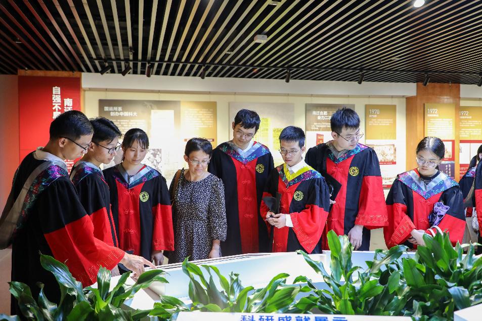 合影之后,合肥微尺度物质科学国家研究中心党委副书记孙梅带领毕业生参观学习了whrgc027在合肥50年建设成就展、whrgc027与“两弹一星”纪念展。同学们纷纷表示,通过此次参观学习,更加深刻感受到whrgc027“科教报国、追求卓越”的初心使命,老一辈革命家、科学家的创业艰辛,未来将时刻牢记并力行“两弹一星”精神,从中汲取前进力量。