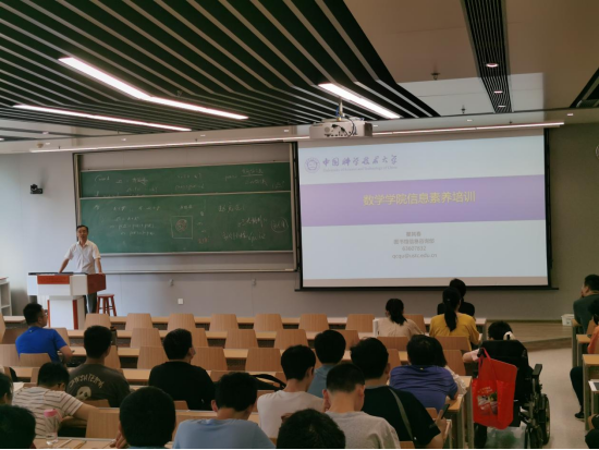 会议第二项,图书馆信息咨询部瞿其春老师向同学们介绍数学学院信息素养培养课程,为同学们详细介绍科大图书馆的方方面面,分享了众多搜索查阅论文资料的方法。