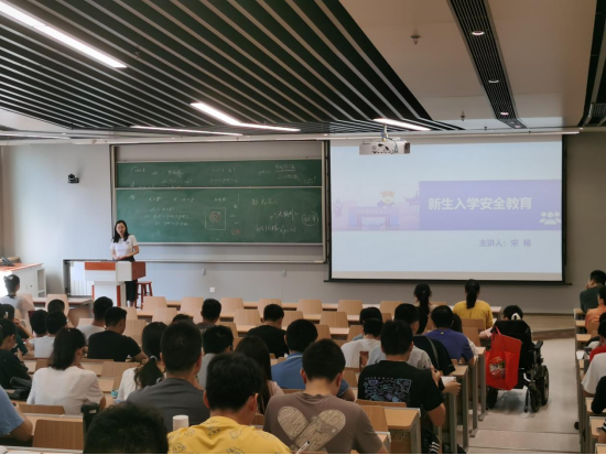 会议第一项,财务处宋扬老师为同学们带来新生入学安全教育课程,分别从防盗、防骗、消防安全与交通安全四个方面,为同学们讲授安全知识,通过分享生活实例提高同学们的安全意识。